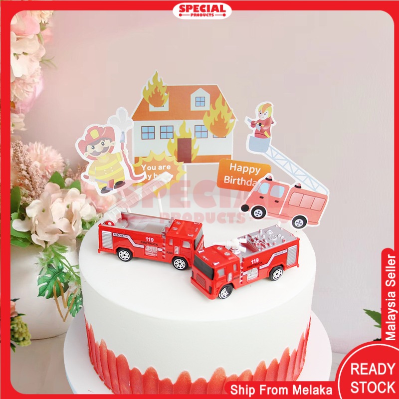 Fire Fighter Fire Engine Cars Theme Cake Topper 消防车蛋糕装饰摆件 生日蛋糕装饰 插排 Kek Hiasan Hari Jadi Harijadi Kereta Bomba Shopee Malaysia