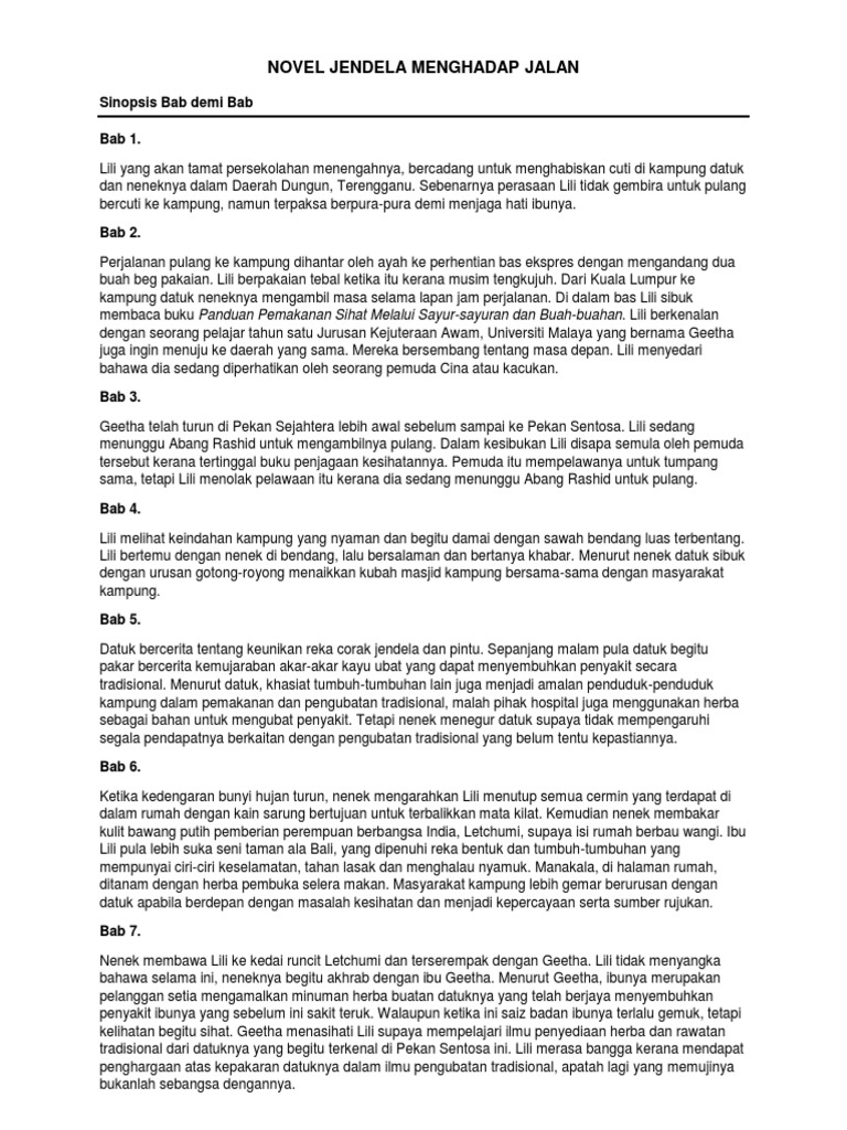 Novel1 Docx Novel Jendela Menghadap Jalan Persoalan Novel Yang Saya Kaji Di Tingkatan 4 Ialah Novel Jendala Menghadap Jalan Karya Ruhaini Matdarin Course Hero